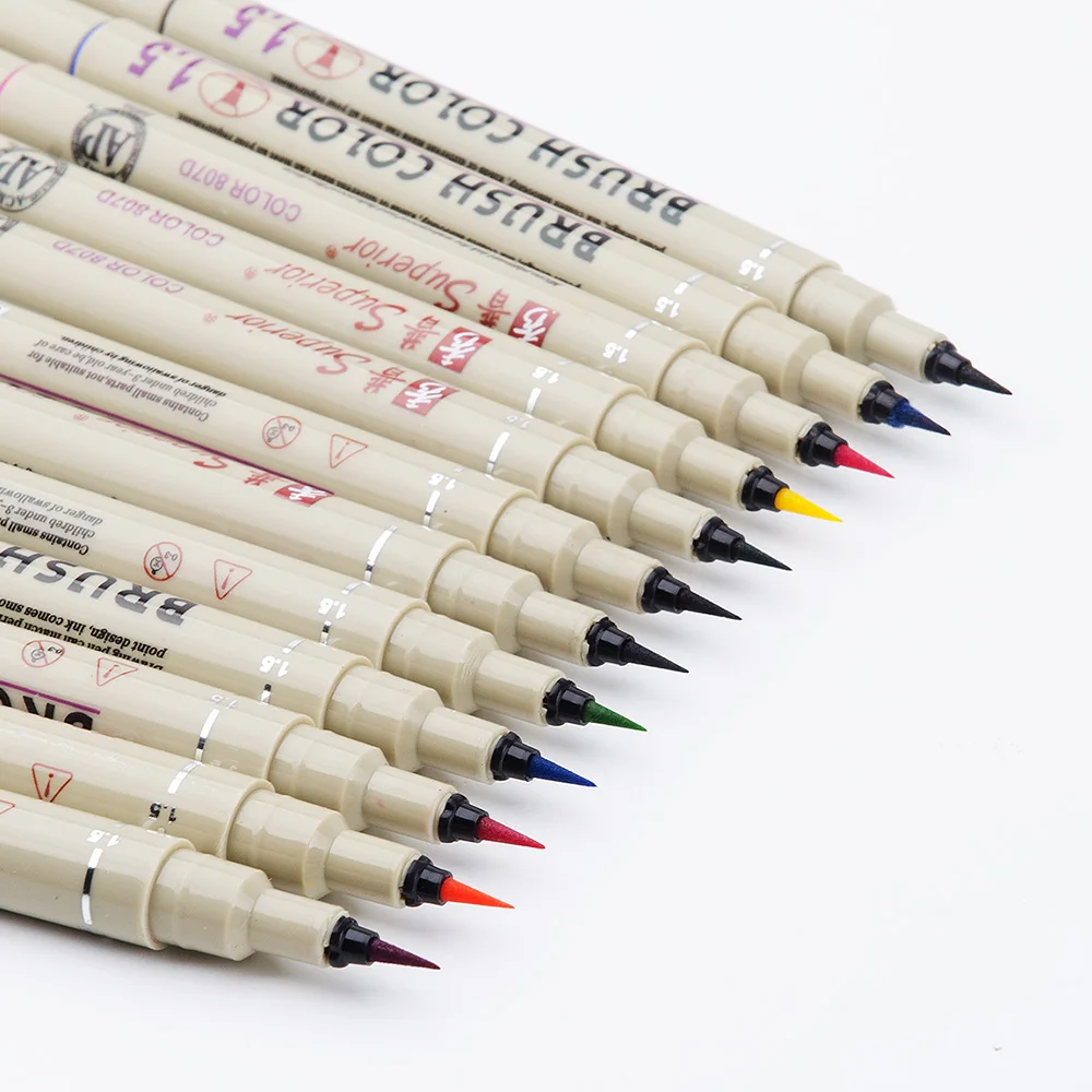 Купить 12 Цветов lot мягким наконечником пера Кисточки Маркеры для художника Дизайн мягкие на водной основе Цвет Кисточки Цена Дешево