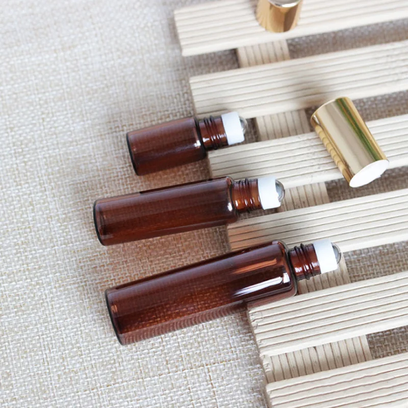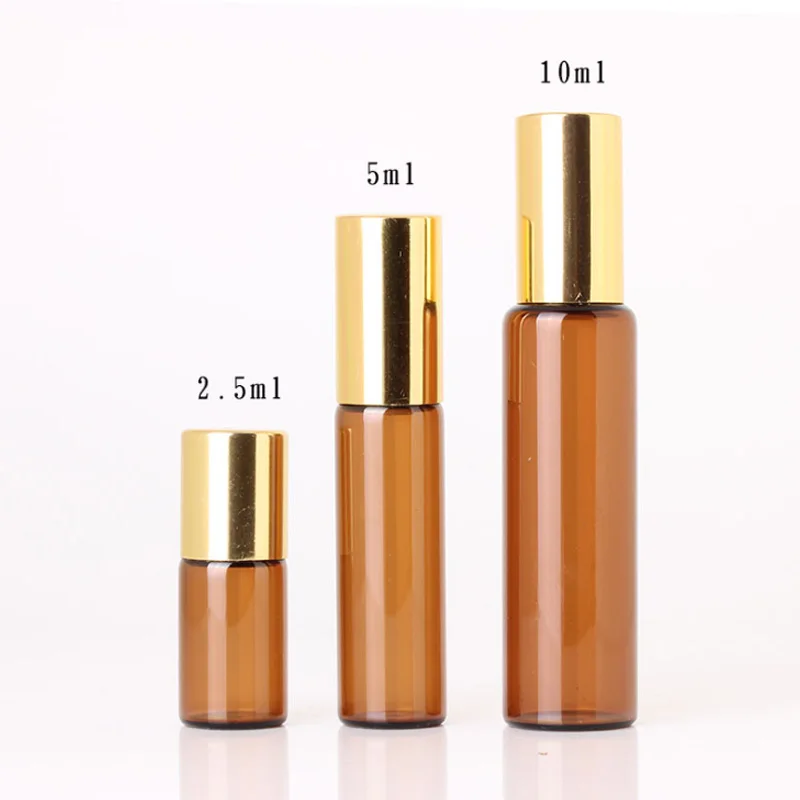 Купить Макияж Стекло бутылка 2,5 мл 5 мл 10 мл Roll на пустой аромат духов эфирные масла бутылки с металлическими шариками ролик Золотой Кепки Цена Дешево.