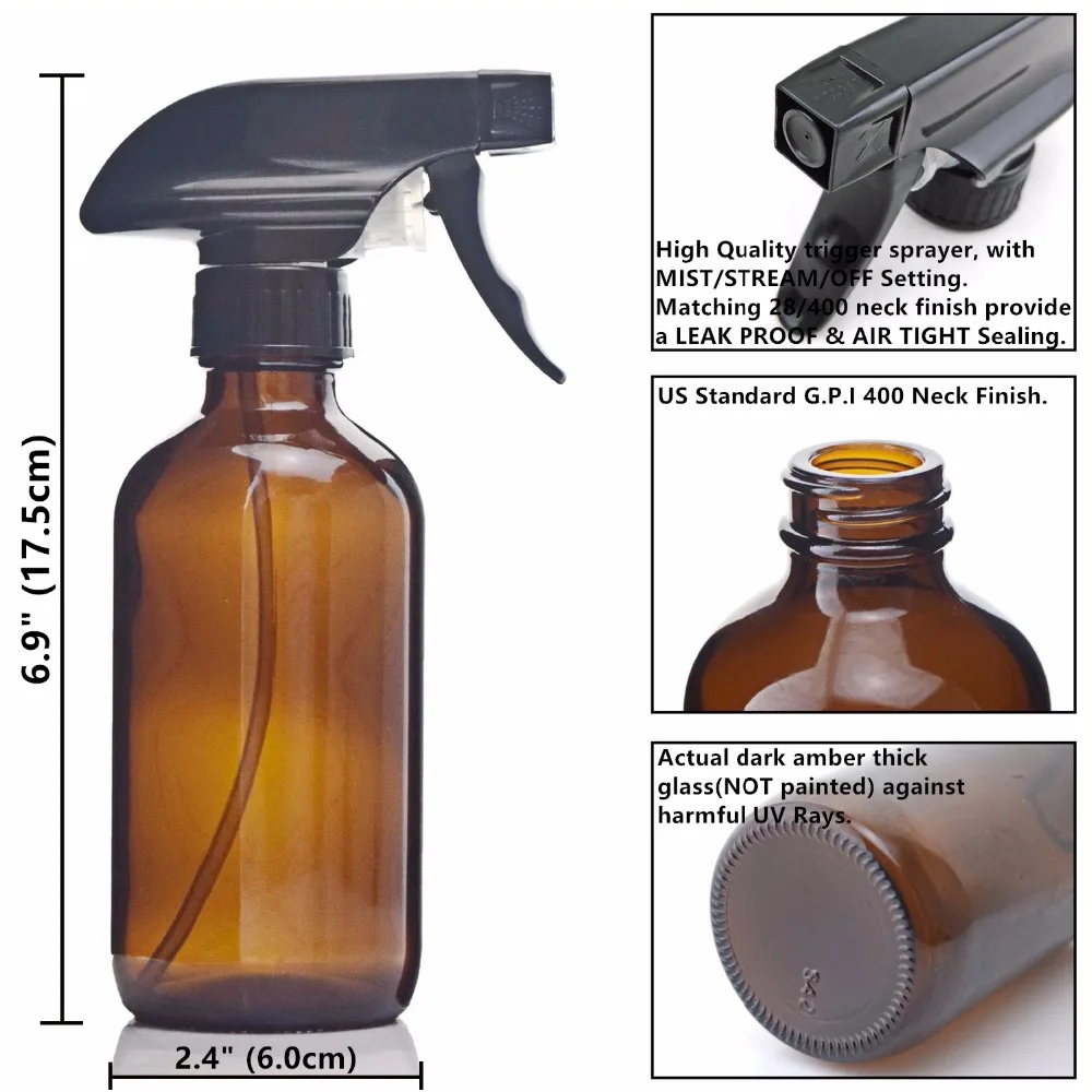 Купить 2X8 унц. Большой 250 мл Янтарный Стекло спрей бутылочки с черным курковым распылителем кепки для эфирные масла натуральный тематические товар... Продажа Дешево
