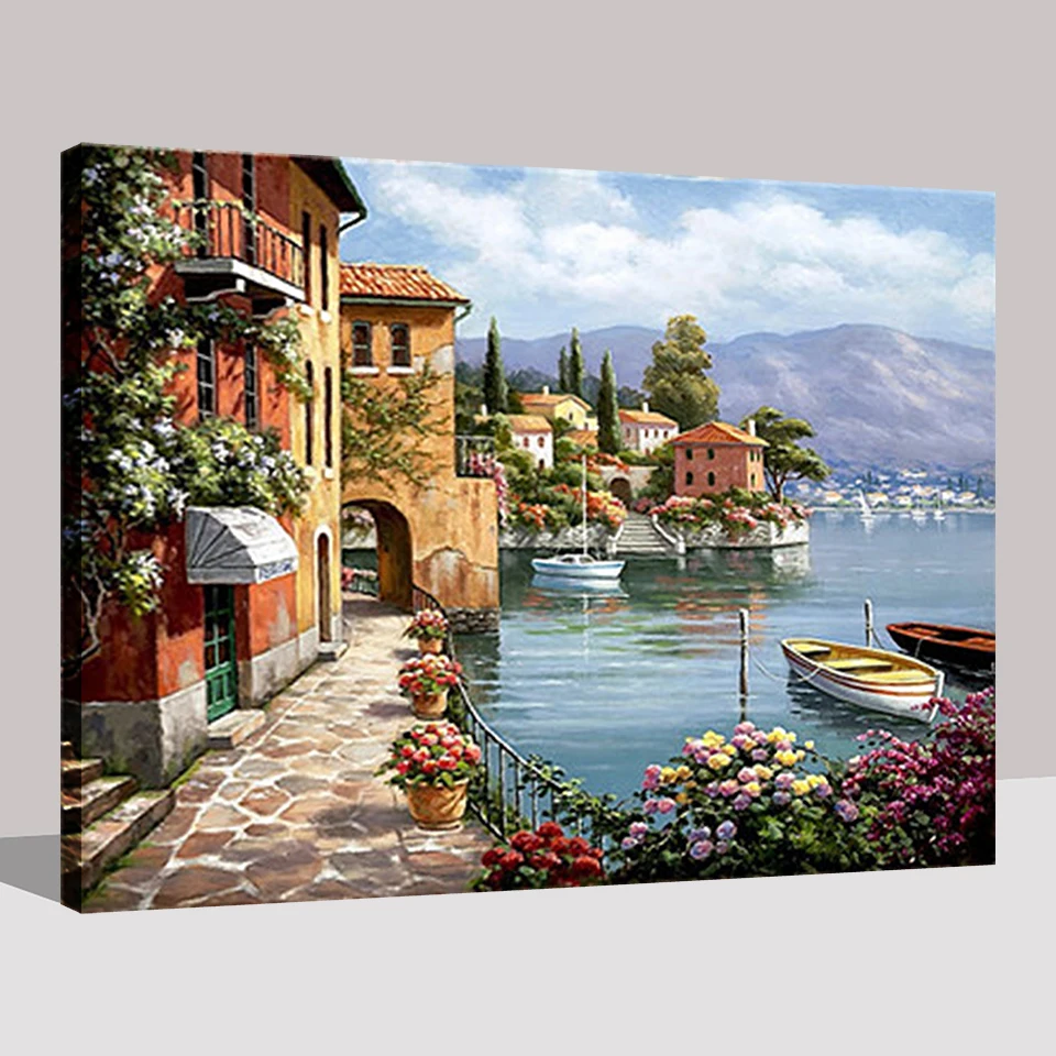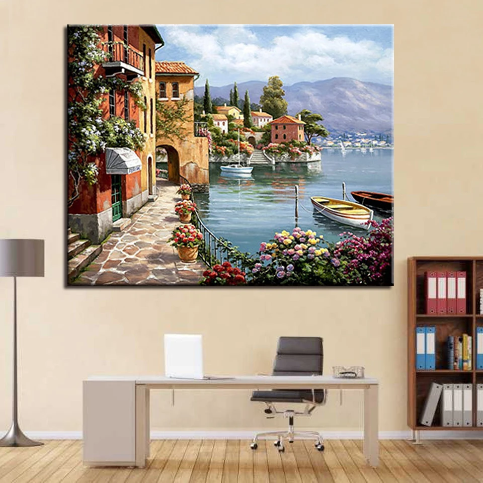 Купить Рамки DIY живопись по номерам Наборы окраска расписанную прибрежных городской пейзаж масло фотографии детей уникальный подарок Гостиная ст... Цена Дешево.
