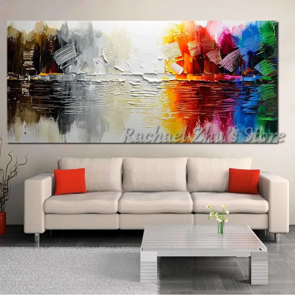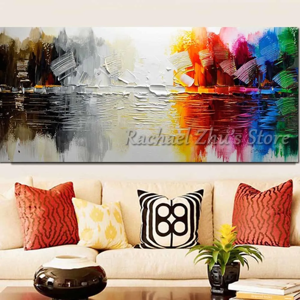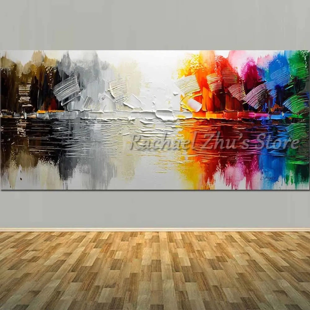 Купить 100% ручная роспись Абстрактная Цвет стены картину маслом на холсте современного Цвет Книги по искусству Палитры Ножи Гостиная дома Декор ст... Продажа Дешево