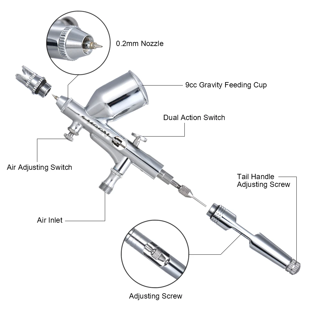 Купить KKmoon двойного действия гравитационной подачи Аэрограф Комплект с 1,8 м шланг 0,2 0,3 0,5 мм иглы 9cc чашки воздушная кисть для Книги по искусству Жив... Цена Дешево.
