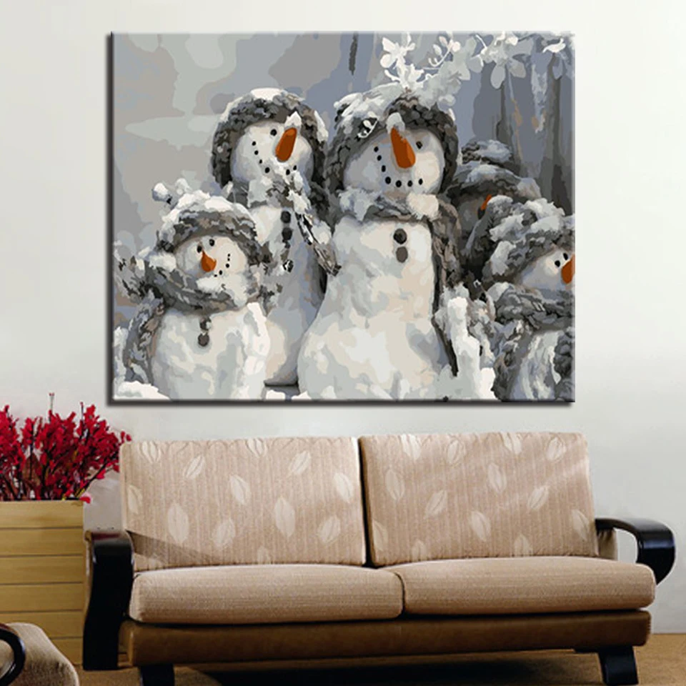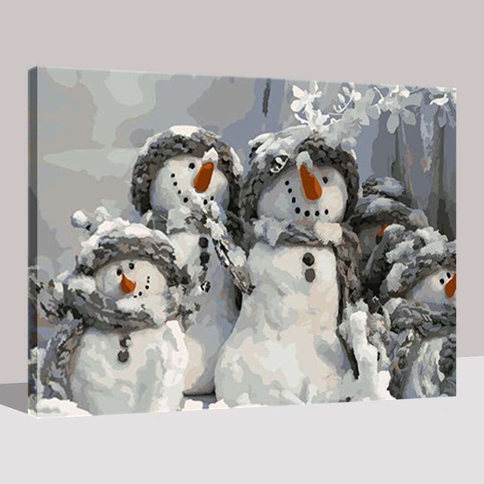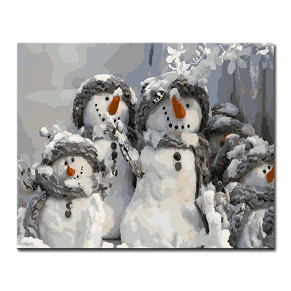 Купить DIY цифровой живописи по номерам Наборы окраска расписанную Снеговик Семья нефти фотографии холсте Home Decor Wall Книги по искусству Framework подарки Продажа Дешево