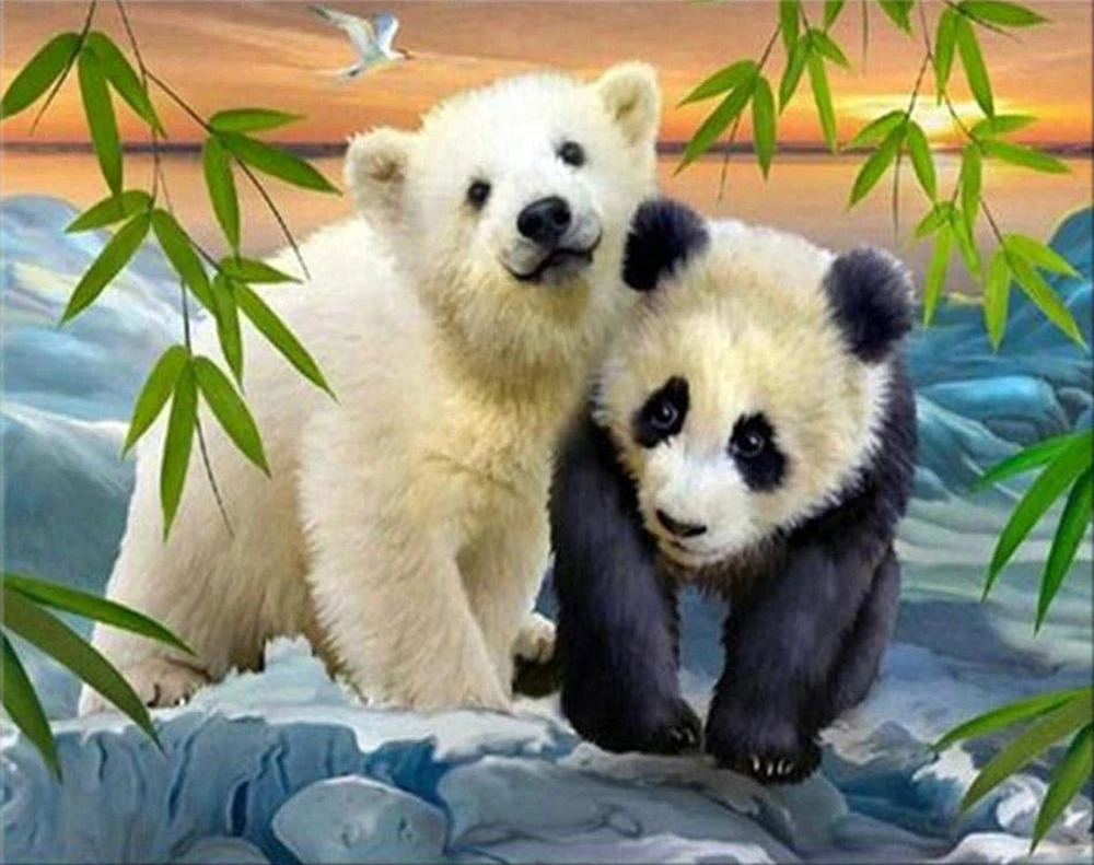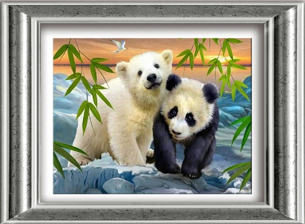 Купить 5D кристаллы алмазы Сделай Сам Живопись животных полный квадратный полярный медведь и панда дружбы книги по искусству комплект со стразами ... Продажа Дешево