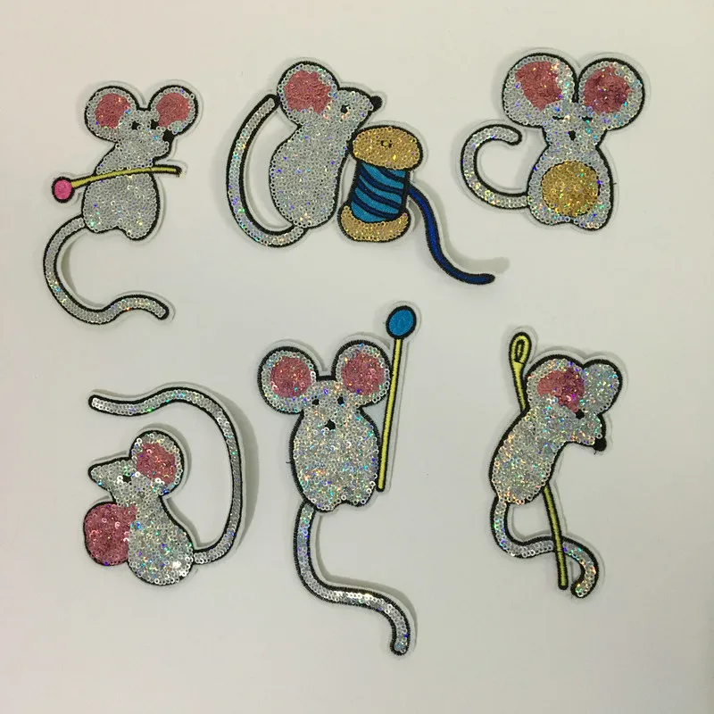 Купить 6 шт. комплект прекрасный мыши блестками патч для платья, одежде украшения пайетки вышивка аппликация патчи Продажа Дешево
