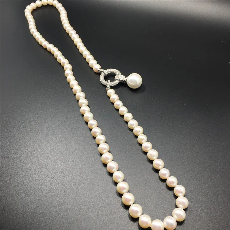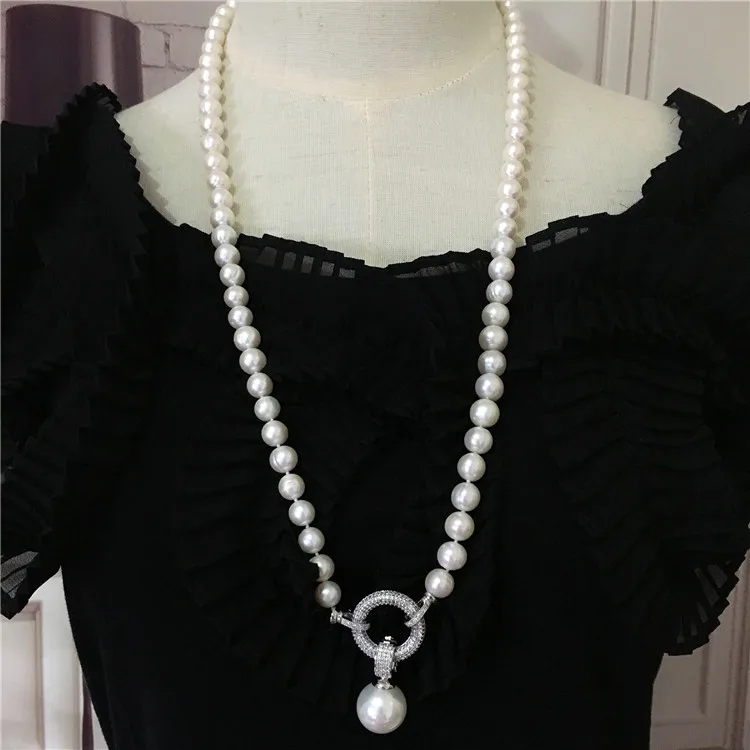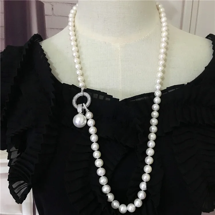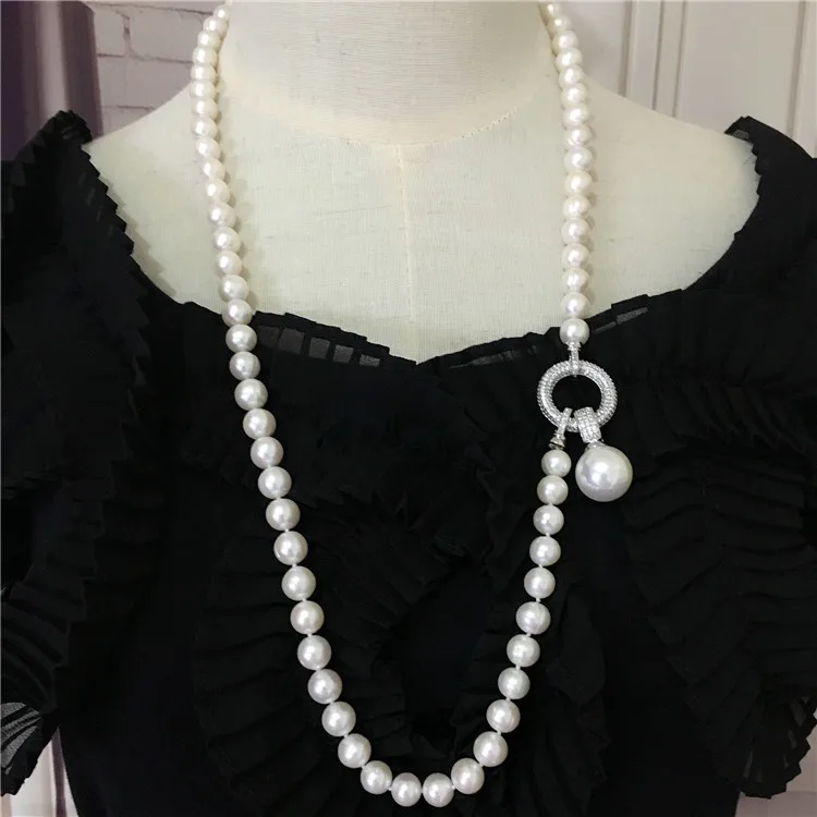 Купить Дизайн 9 10 мм белый натуральный пресноводный жемчуг модное длинное ожерелье свитер цепи ювелирные изделия Цена Дешево.