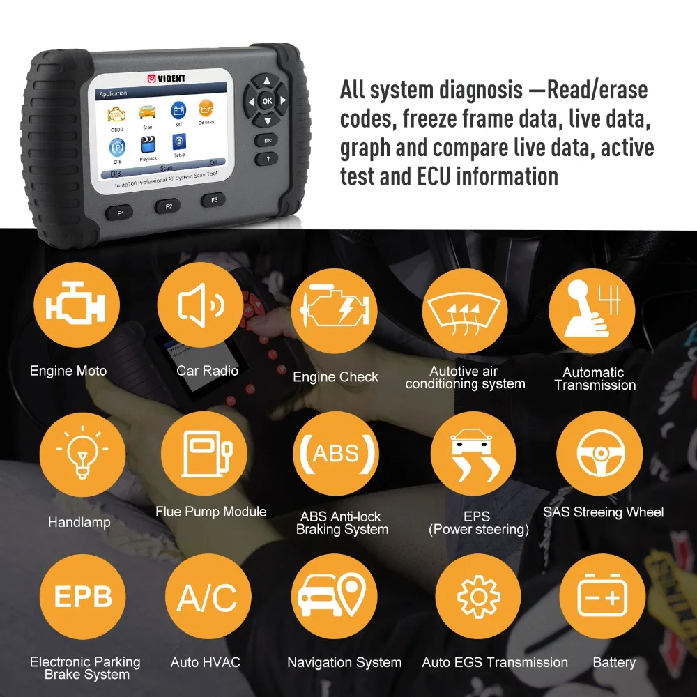 Купить AUOOLxVident iAuto700 автомобильной OBD автомобиля полный системы для диагностики двигателя масла EPB EPS ABS Сброс подушки безопасности батарея инструме... Цена Дешево