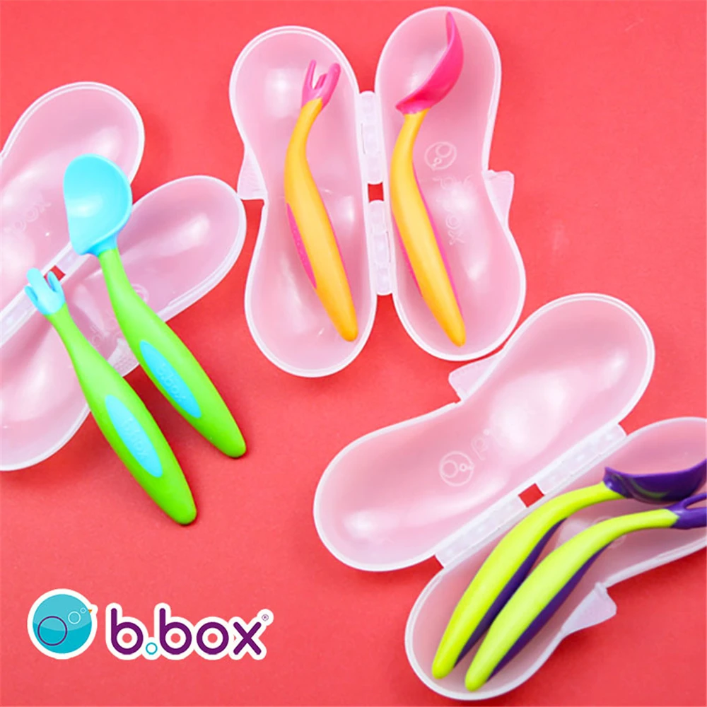 Купить Одноцветное кормления B. коробка для Еда ложки, вилки набор BPA бесплатно Baby силиконовая ложка Вилка детская столовые приборы для кормления Т... Продажа Дешево