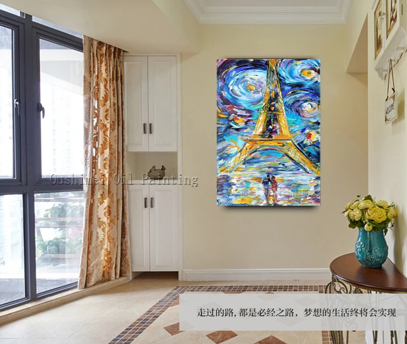 Купить Топ художника питания ручная роспись высокое качество Аннотация Париж картина маслом на холсте Абстрактная Эйфелева башня холст для живоп... Продажа Дешево