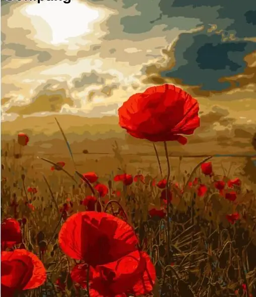 Купить Рамка diy art цветы мака картина подарок краска по номерам стены картину живописи по номерам Лен Картина home decor paint Цена Дешево.