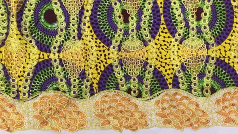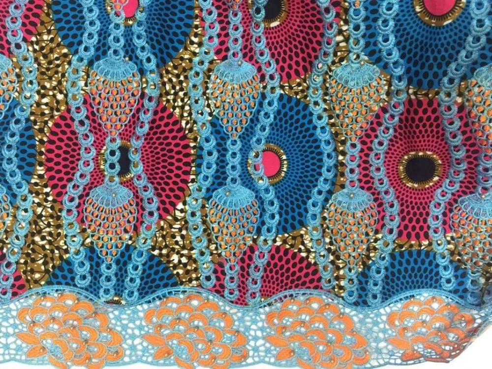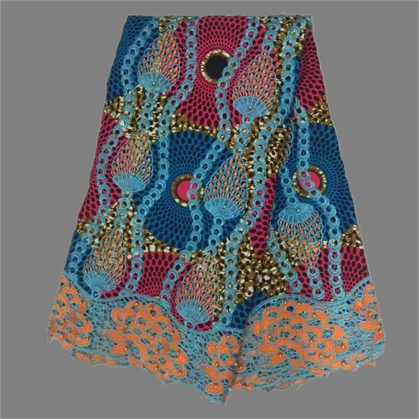 Купить Популярная отделка бисером Африканский супер вышивка воск батик ткань с шнур кружево для леди платье WLF165 (6 ярдов партия) Продажа Дешево.