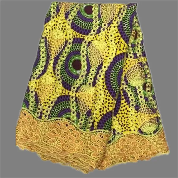 Купить Популярная отделка бисером Африканский супер вышивка воск батик ткань с шнур кружево для леди платье WLF165 (6 ярдов партия) Цена Дешево