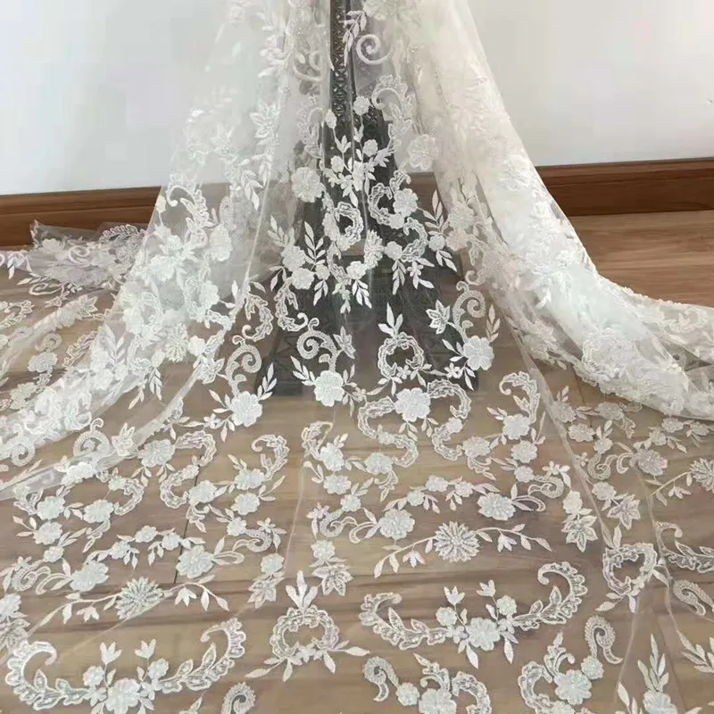 Купить Вышитые бисером тюль кружевной ткани Высокое качество сиреневый фиолетовый Африканский шнура Французский кружевной ткани 5 ярдов партия ... Цена Дешево.