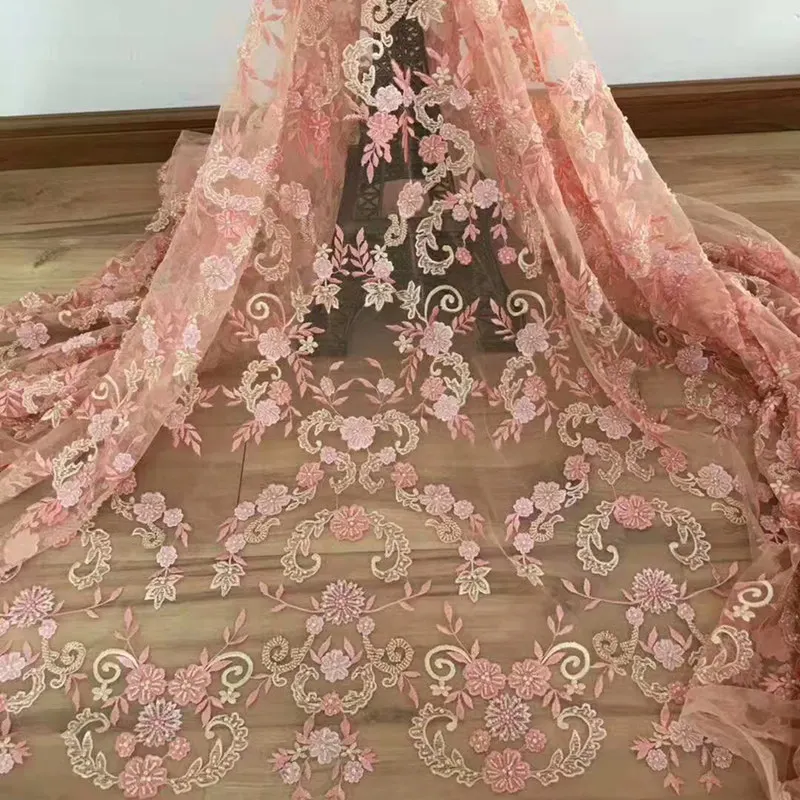 Купить Вышитые бисером тюль кружевной ткани Высокое качество сиреневый фиолетовый Африканский шнура Французский кружевной ткани 5 ярдов партия ... Цена Дешево