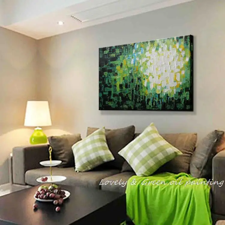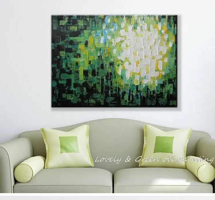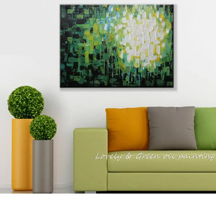 Купить Ручная работа зеленые бриллианты палитра нож абстрактная живопись маслом на холсте Современное украшение дома для гостиной стены искусств... Цена Дешево