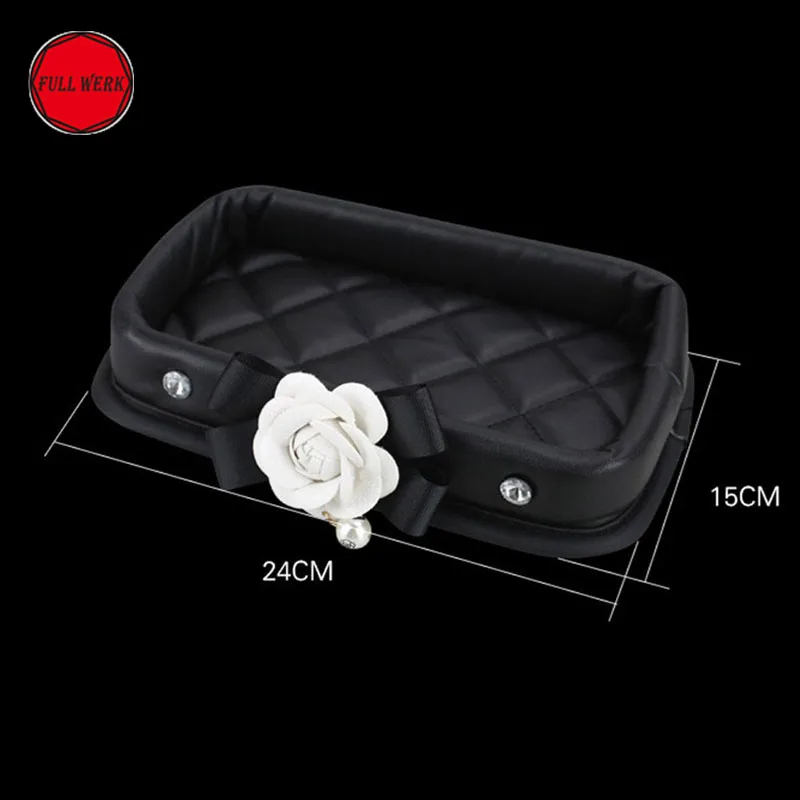 Купить Приборной панели автомобиля коробка для хранения из искусственной кожи Организатор цветок камелии Автомобильный интерьер украсить консол... Цена Дешево.
