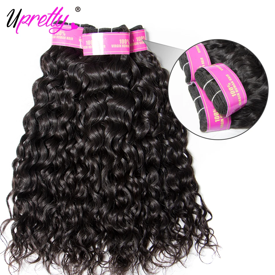 Купить Upretty волосы волна воды пучки с закрытием влажные и волнистые натуральные волосы 3 Связки с закрытием норки бразильские волосы плетение пучк... Продажа Дешево