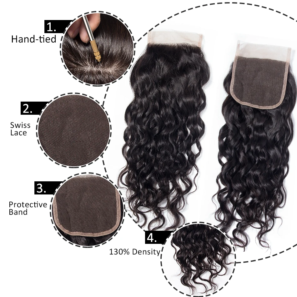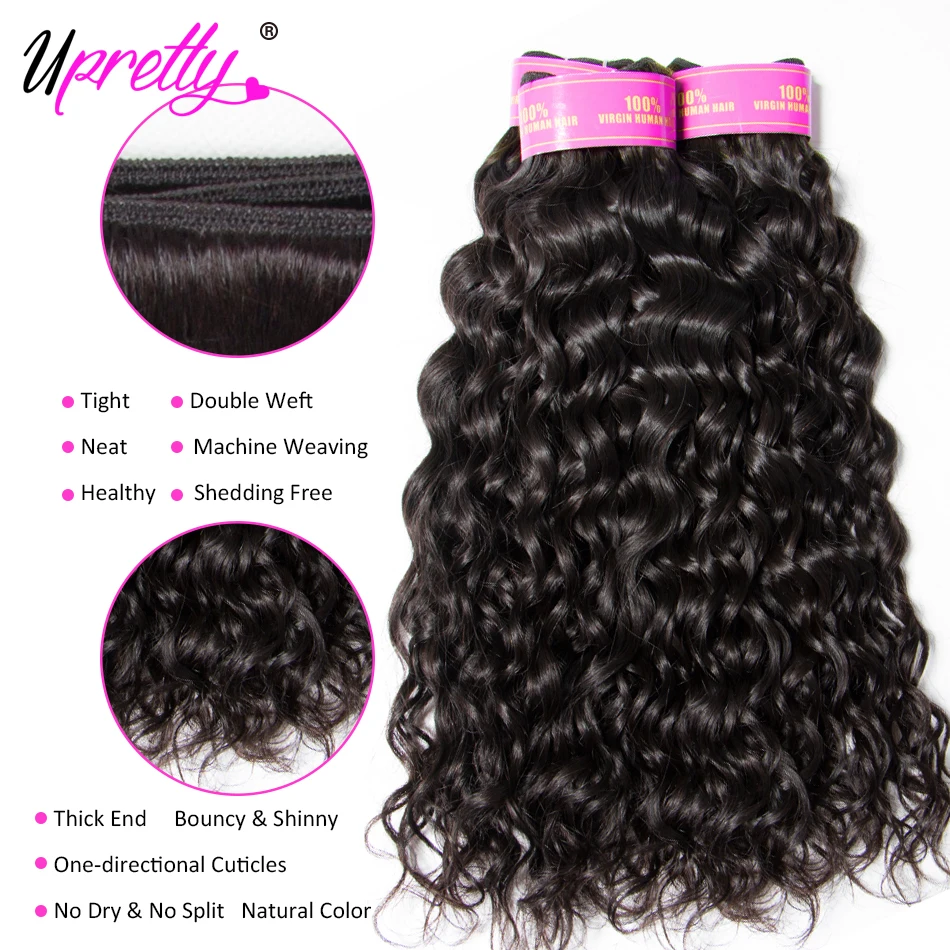 Купить Upretty волосы волна воды пучки с закрытием влажные и волнистые натуральные волосы 3 Связки с закрытием норки бразильские волосы плетение пучк... Продажа Дешево.