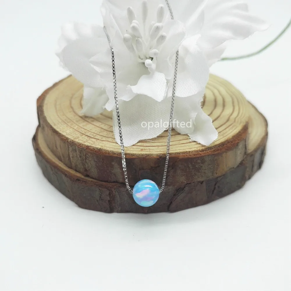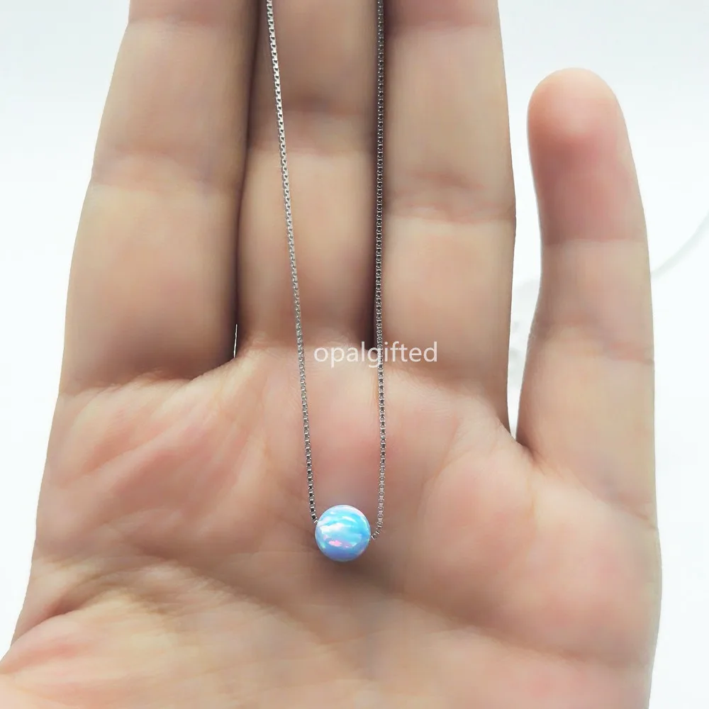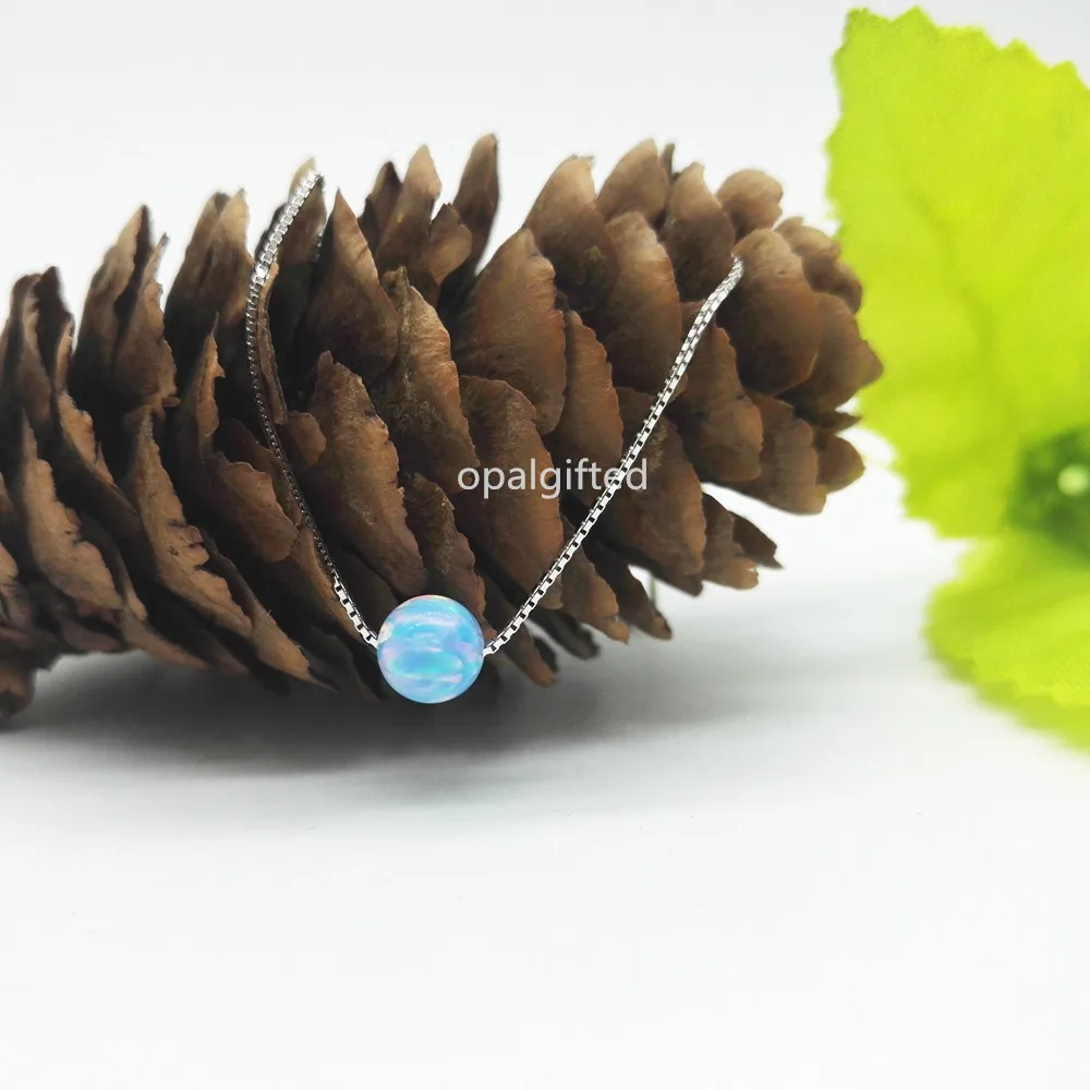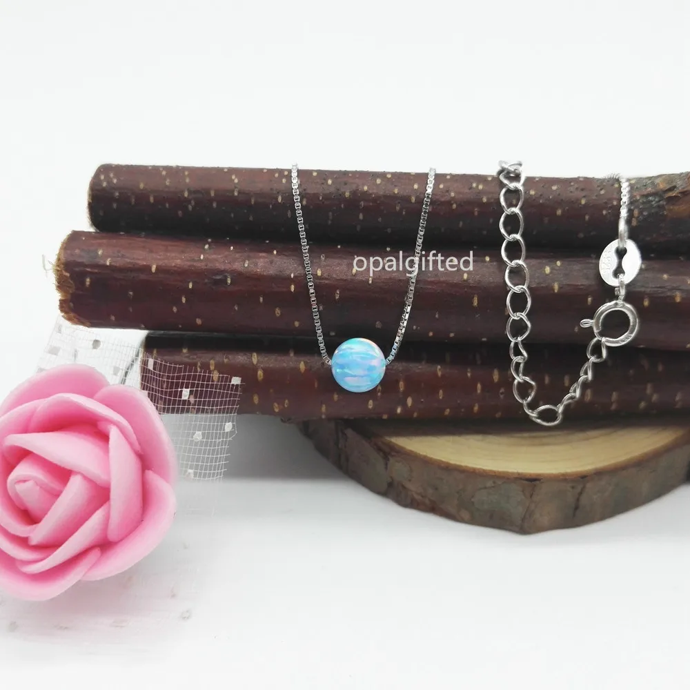 Купить (1 шт. лот) бесплатная доставка синтетический 6 мм круглый шарик опал Серебро 925 Цепочки и ожерелья OP26 хороший огонь круглый шар опал Цепочки и... Продажа Дешево