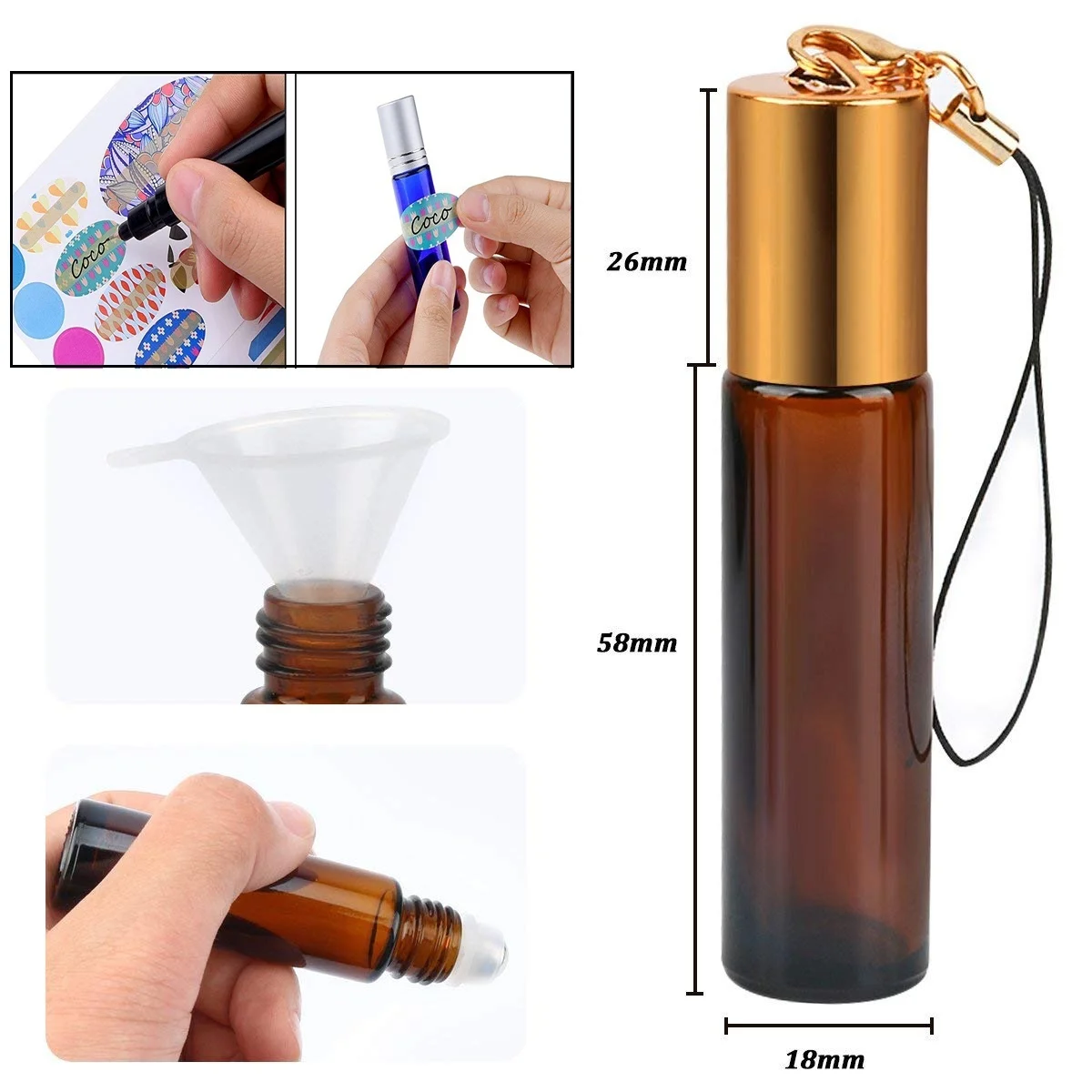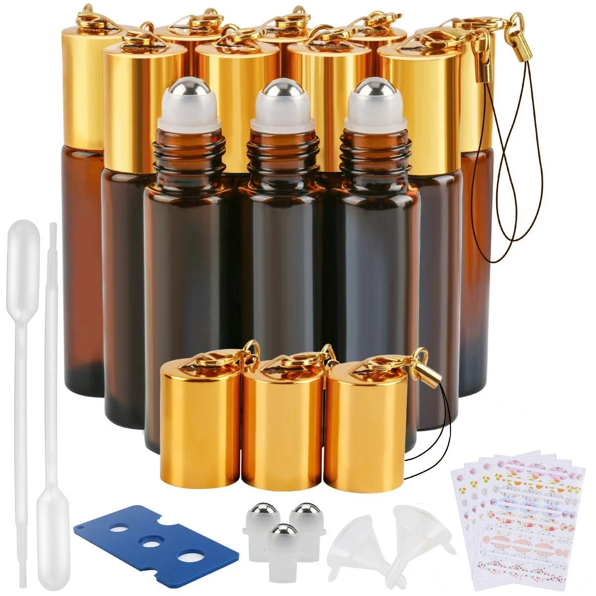 Купить Стеклянный бутылка с роликом набор из 12 10 мл амбровое эфирное масло бутылок ролик с Нержавеющая сталь шарики ролики и висит крышками Продажа Дешево