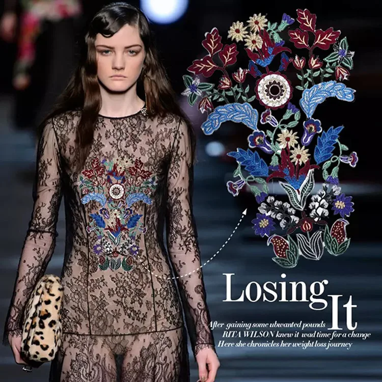 Купить 2018 Новая мода Показать горячий продавать Вышивка Кружева аппликации 1 шт. 1 шт. черный из органзы с вышивкой high end кружева патч пришить Продажа Дешево