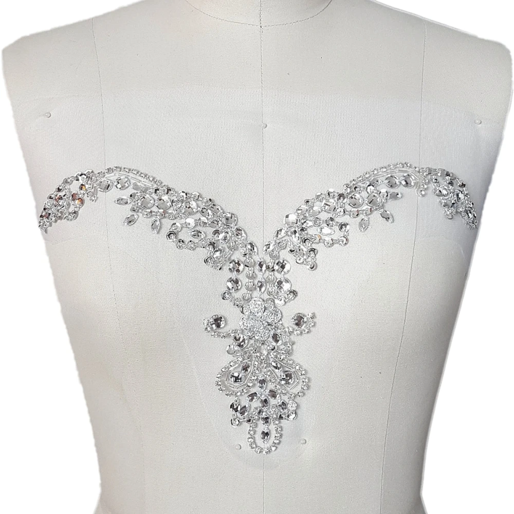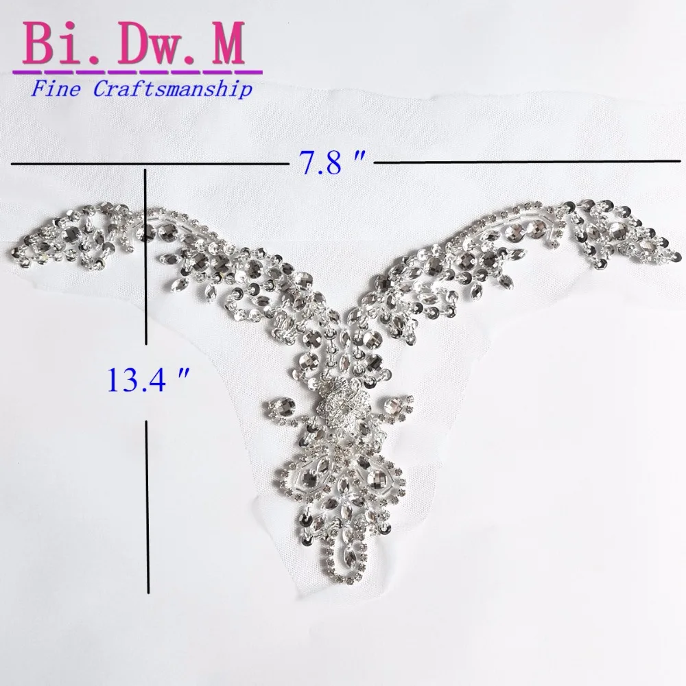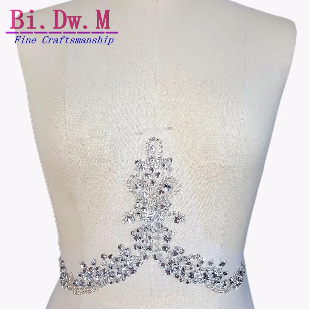Купить Bi. Dw. M тонкой ремесленной Серебряный Кристалл Rhinestone бисером Вышивание аппликация нашивсм Ки 20x34 см Для Свадебные украшения Свадебные платья Продажа Дешево.