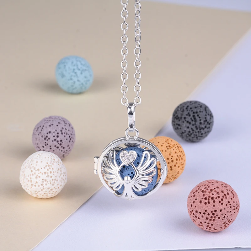 Купить Eudora ожерелье Лава Кулон вулканический камень цепи Крылья Ангела цепочки и ожерелья для женщин духи шарик для аромакулона модные украшения ... Продажа Дешево.