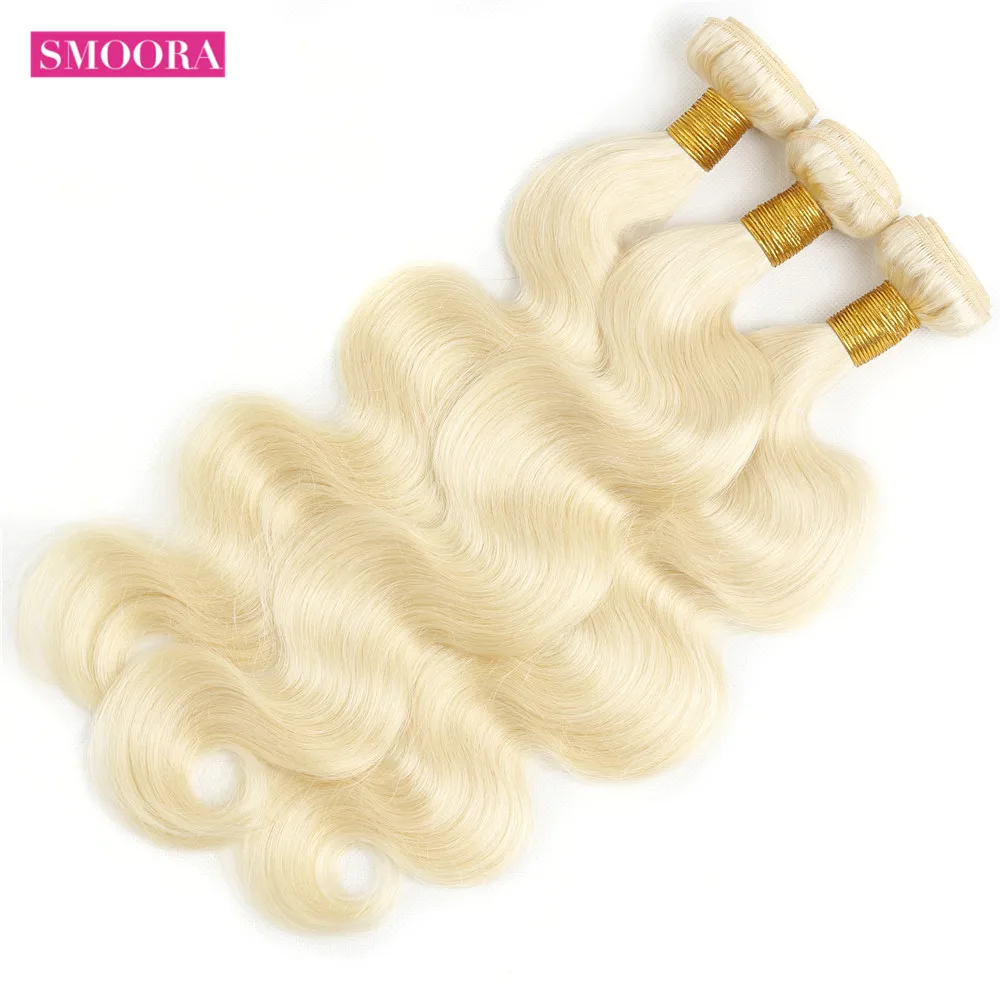 Купить Smoora 613 Связки с фронтальной перуанской Remy волна 3 человеческих волос блондинка пучки с предварительно сорвал фронтальной уха до уха 13*4 Продажа Дешево.
