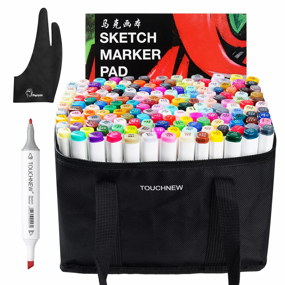 Купить TOUCHNEW 168 Цвета установить маркер художник живопись Manga Dual Head алкоголя маркеры + A4 Рисование книга двумя пальцами перчатки Продажа Дешево.