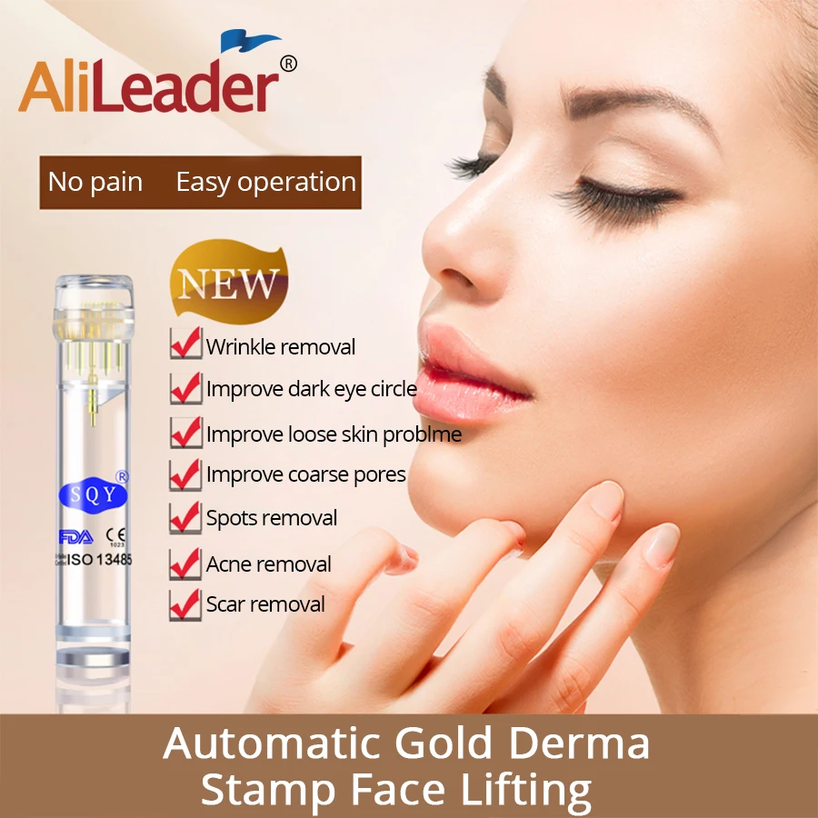 Купить Alileader косметический уход за кожей Инструменты против морщин золото ролик для кожи, игольчатый подтяжки кожи машина лицо стройнее 0,6 мм иглы Продажа Дешево.